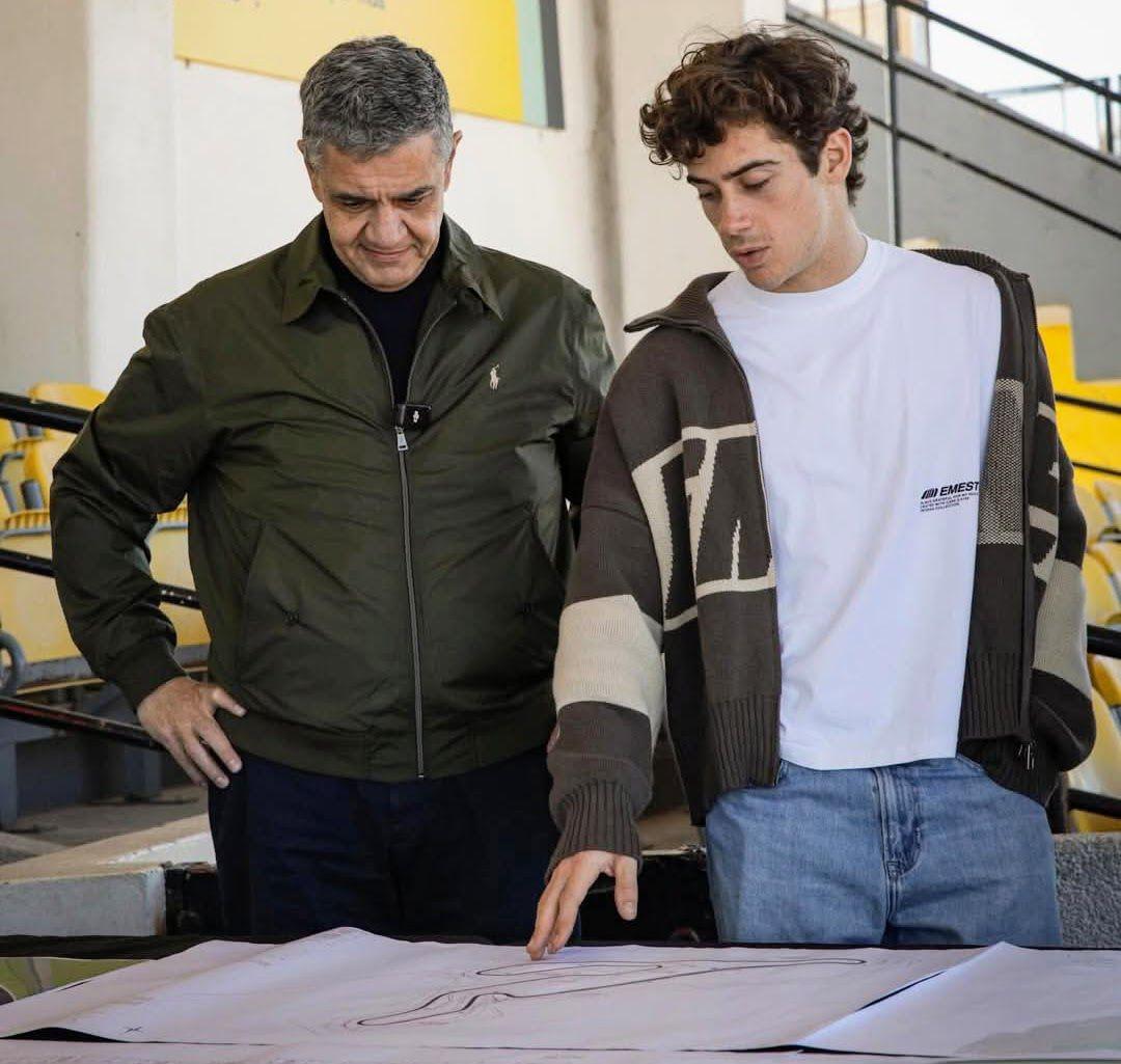 PRENSA CABA. Jorge Macri y Franco Colapinto observan los planos de los trabajos en el autódromo porteño.