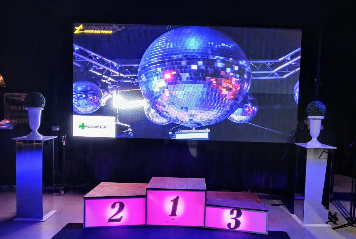 PRENSA MSAP Y MP. La decoración del podio en el salón Los Maderos de la localidad de Susana.