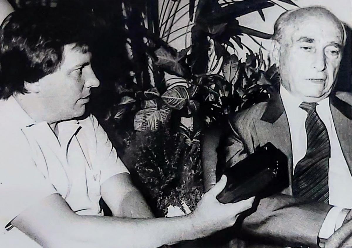 FOTO ARCHIVO VHF. Entrevistando a Juan Manuel Fangio, quíntuple campeón mundial de F1.