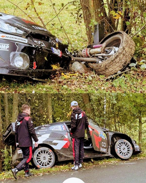 Ott Tänak (Hyundai i20) se mantuvo tercero, 18s5d por detrás de Evans, tras una jornada dramática en la que Sébastien Ogier (Toyota Yaris) abandonó la carrera. El francés sufrió un duro revés en su intento de conquistar su noveno título al chocar con una piedra en el TC8 que rompió un tornillo del brazo de dirección de su máquina.