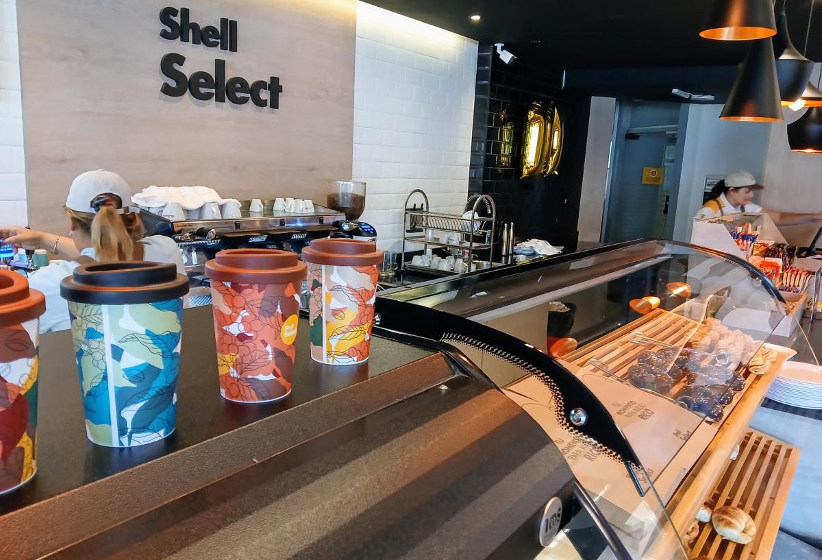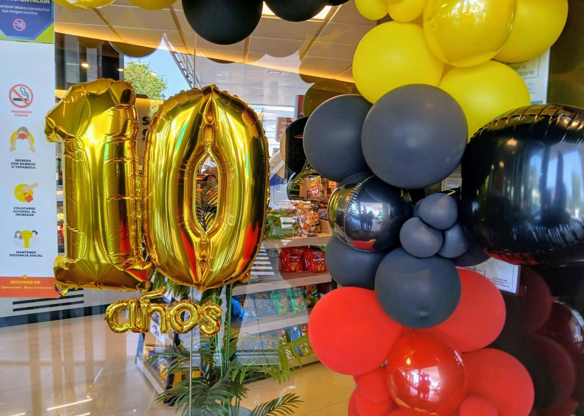 FOTOS VHF. El ingreso al espacio Shell Select (arriba) y decorado especial por los 10 años (abajo).